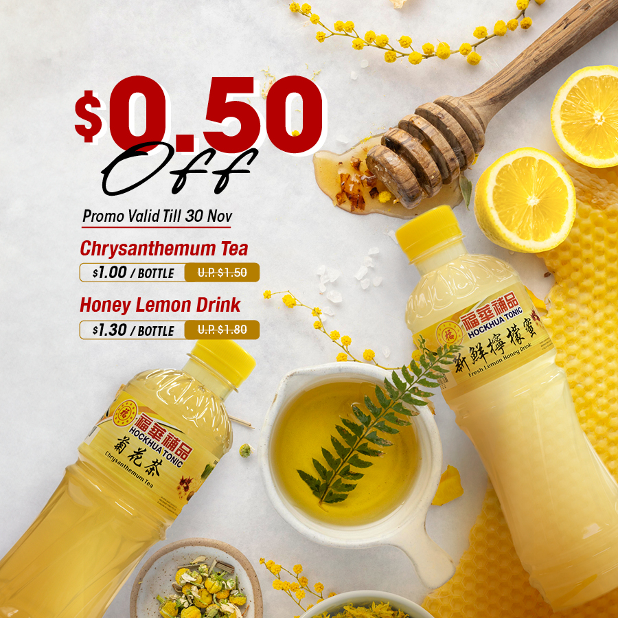 HOCKHUA TONIC - $0.50 OFF Chrysanthemum Tea (U.P. $1.50) & Honey Lemon Drink (U.P. $1.80)