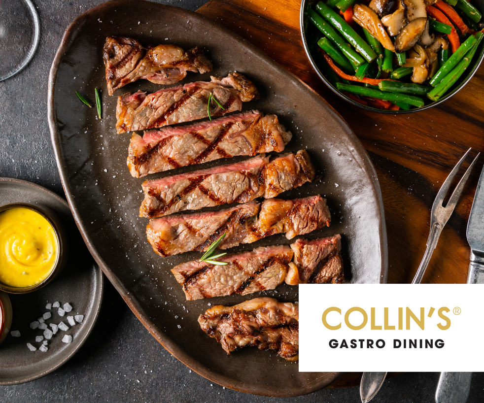 With a wide selection of great grills, succulent meats, woodfired pizzas, carefully selected wines and drinks list, COLLIN'S® offer a curated extensive menu that is sure to please all in a group of family and friends.